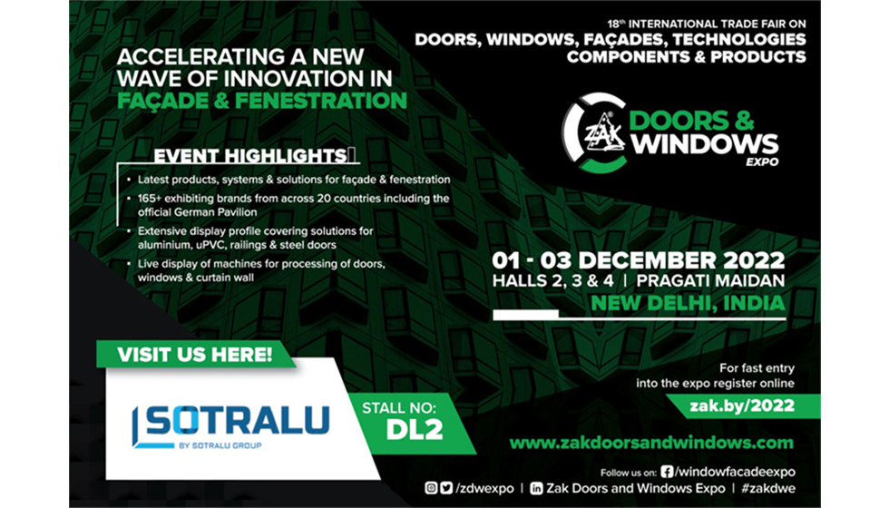 “WINDOWS, DOORS & FACADES” EXHIBITION The Sotralu Group will be present at the “Windows, Doors & Facades” Exhibition at the